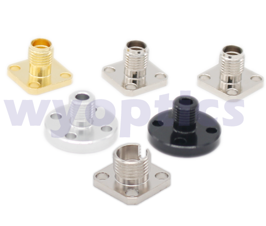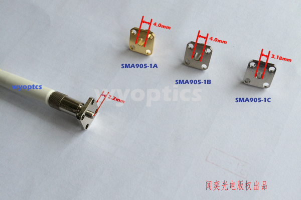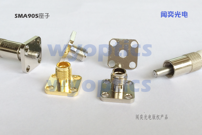 本产品可以安装在法兰盘上,材质为:SMA905-1A黄铜镀金 ; SMA905-1B/C 铜镀镍;SMA905-2A铝制发白,SMA905-2B铝制发黑