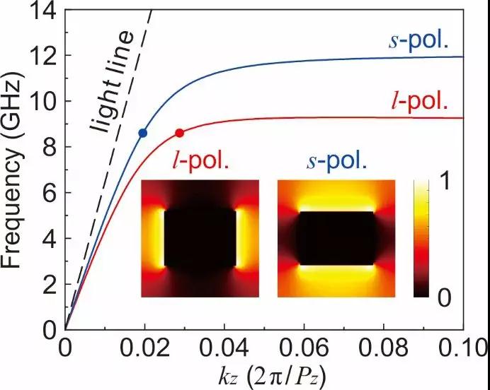 图2 双曲超材料单元的侧壁支持表面波模式,控制单元截面几何参数可以获得宽带高双折射。