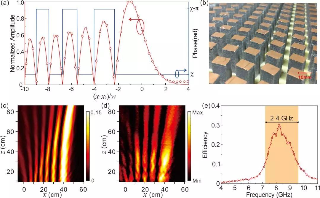 (e)在7.2-9.6 GHz范围内,艾里光束发生器透射效率>10%。