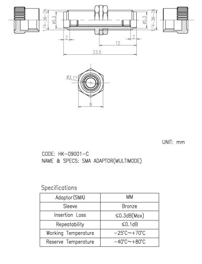 SMA905适配器里面有一个弹性较好的金属套,所以使用过程中比其他厂家生产的精度要高,两根光纤对接的同心度可达到0.005mm以内;